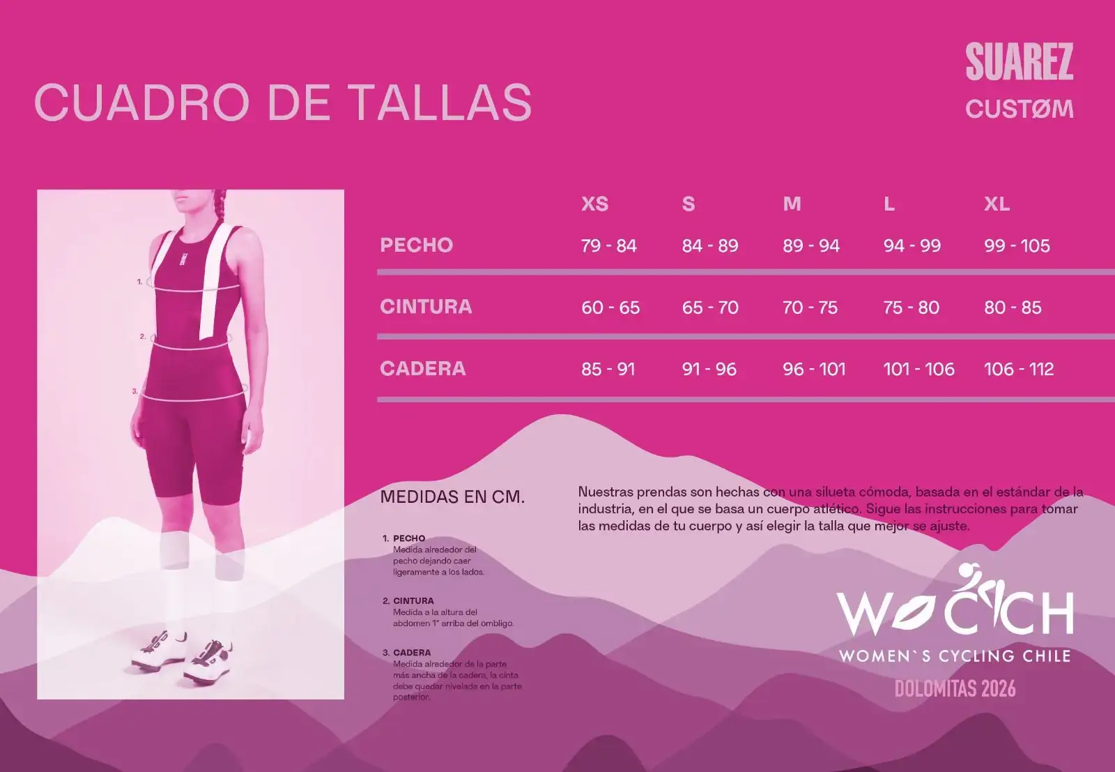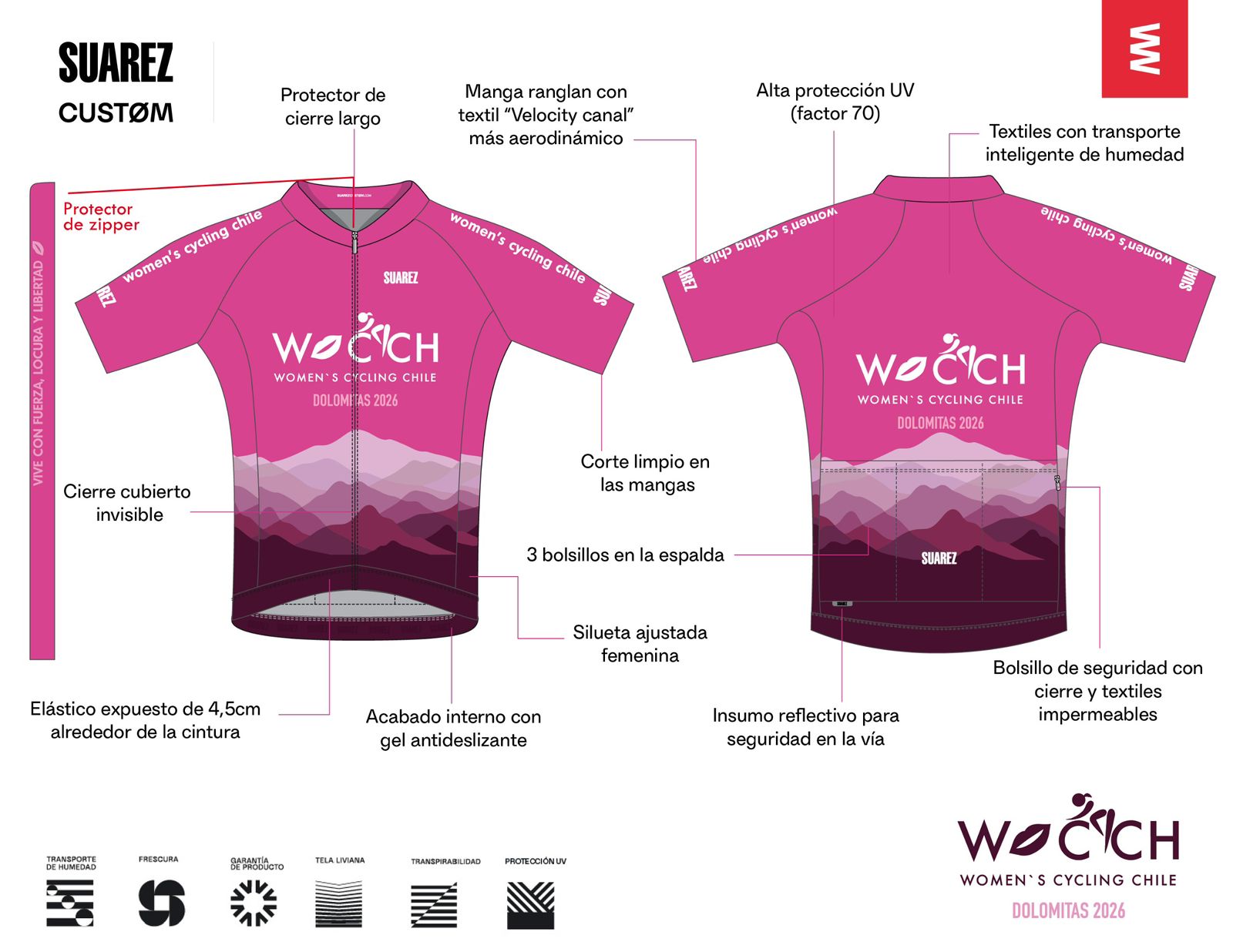 Esta edición especial de Women’s Cycling Chile (WOCCH) es marca Suárez, modelo Performance, diseñada para ofrecer alto rendimiento, comodidad y durabilidad tanto en entrenamientos como en competencia.